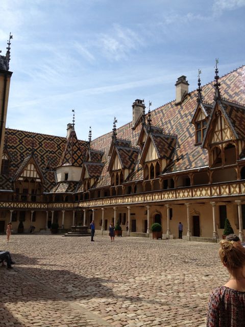 Da wir ja sonst jeden Tag fleissig wie die Bienen sind, haben wir uns und unserer 1A Schloss-Crew letzten Samstag einen Ausflug nach Beaune gegönnt. Eine sehr hübsche Stadt ist das! Auf dem Markt herrschte buntes Treiben, Tinka hat den schönsten Mann Frankreichs am Käsestand entdeckt und wir haben selbstverständlich auch das von Nicolas Rolin 1443 gegründete Armenspital, das Hôtel Dieu, angeschaut. Eindrücklich!