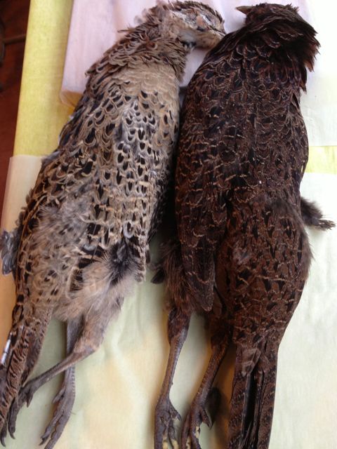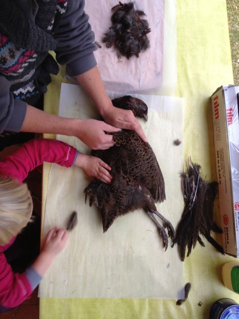 La saison de chasse ist in vollem Schwung und unsere Nachbarn haben uns doch tatsächlich zwei Fasane geschenkt! Die Fasan-Männchen besitzen übrigens ein fast so prächtiges Federkleid wie unser Pfau, der leider kürzlich verschwunden ist und seither zu Toms Leidwesen in den Wäldern herumstreift. Derweil hat Jacotte sich mutig in die grosse weite Welt hinaus gewagt und die Isla Margarita besetzt – die Präsenz gewisser Personen, die wir nicht namentlich erwähnen wollen, scheint auf sie abgefärbt zu haben ; -) Doch zurück zum Thema: das seit dem zarten Alter von sieben Jahren vegetarisch ernährte Stadtkind hat die Tiere also nach Konsultation einschlägiger Anleitungen auf YouTube gemeinsam mit Tinka brav gerupft, den etwas heftigeren Part (Kopf ab, Innereien entfernen, knips und schnips) Tom überlassen, die Fasane anschliessend gestopft, mariniert und in den Ofen geschoben… Die Schrotkugeln sammelten sich lustigerweise alle in Toms Teller, aber offenbar hat es allen drei Fleisch-Essern prächtig geschmeckt. Und auch wenn das Ganze sicherlich eine einmalige Aktion bleiben wird: irgendwie fühlte es sehr viel ehrlicher an, Fleisch auf diese Art zuzubereiten und zu verzehren als sich im Supermarkt ein fein säuberlich abgepacktes Aktions-Pouletbrüstli zu kaufen, ohne einen blassen Schimmer davon zu haben, was für ein Leben bzw. was für ein Tod dahinter steckt.