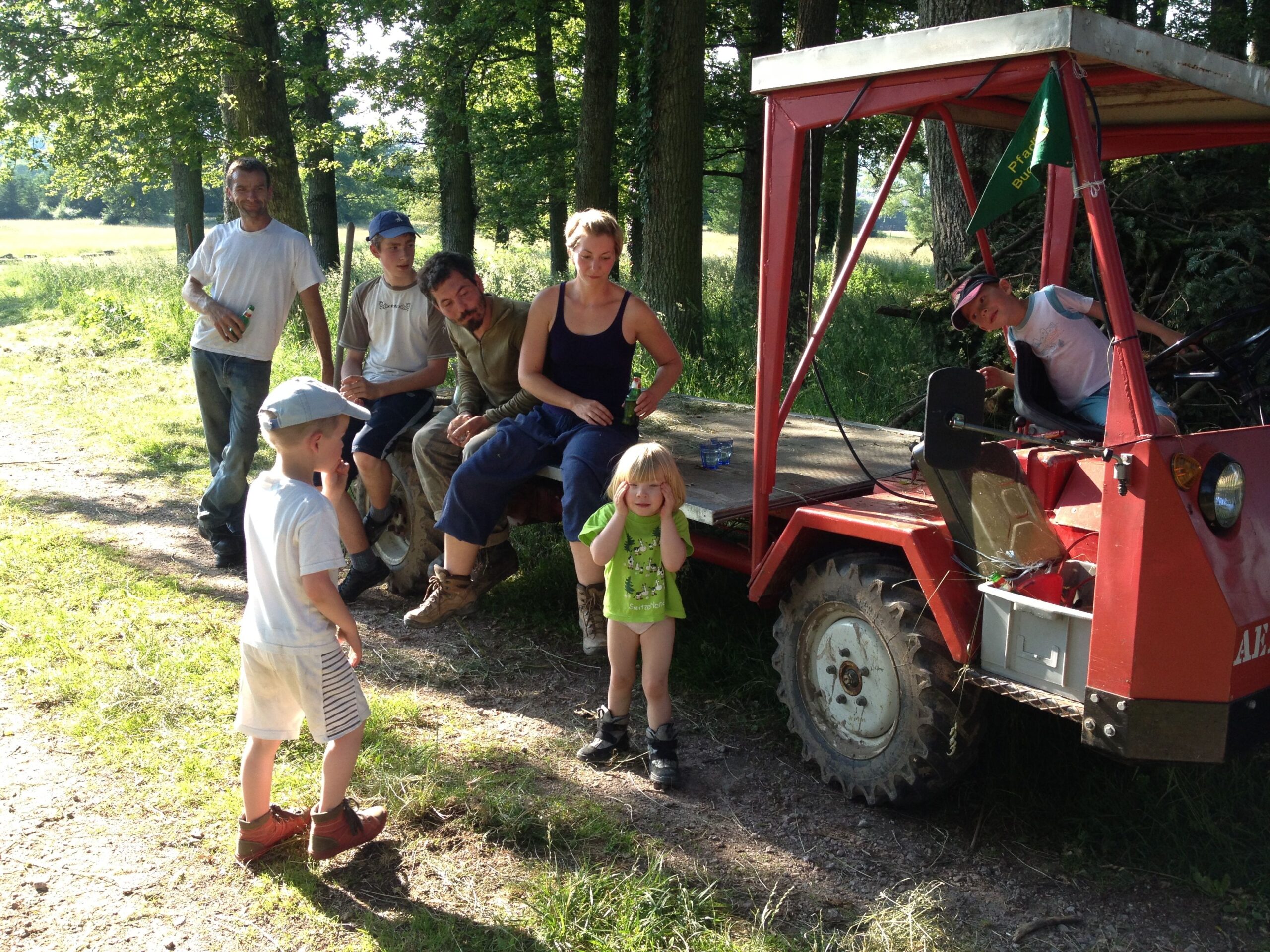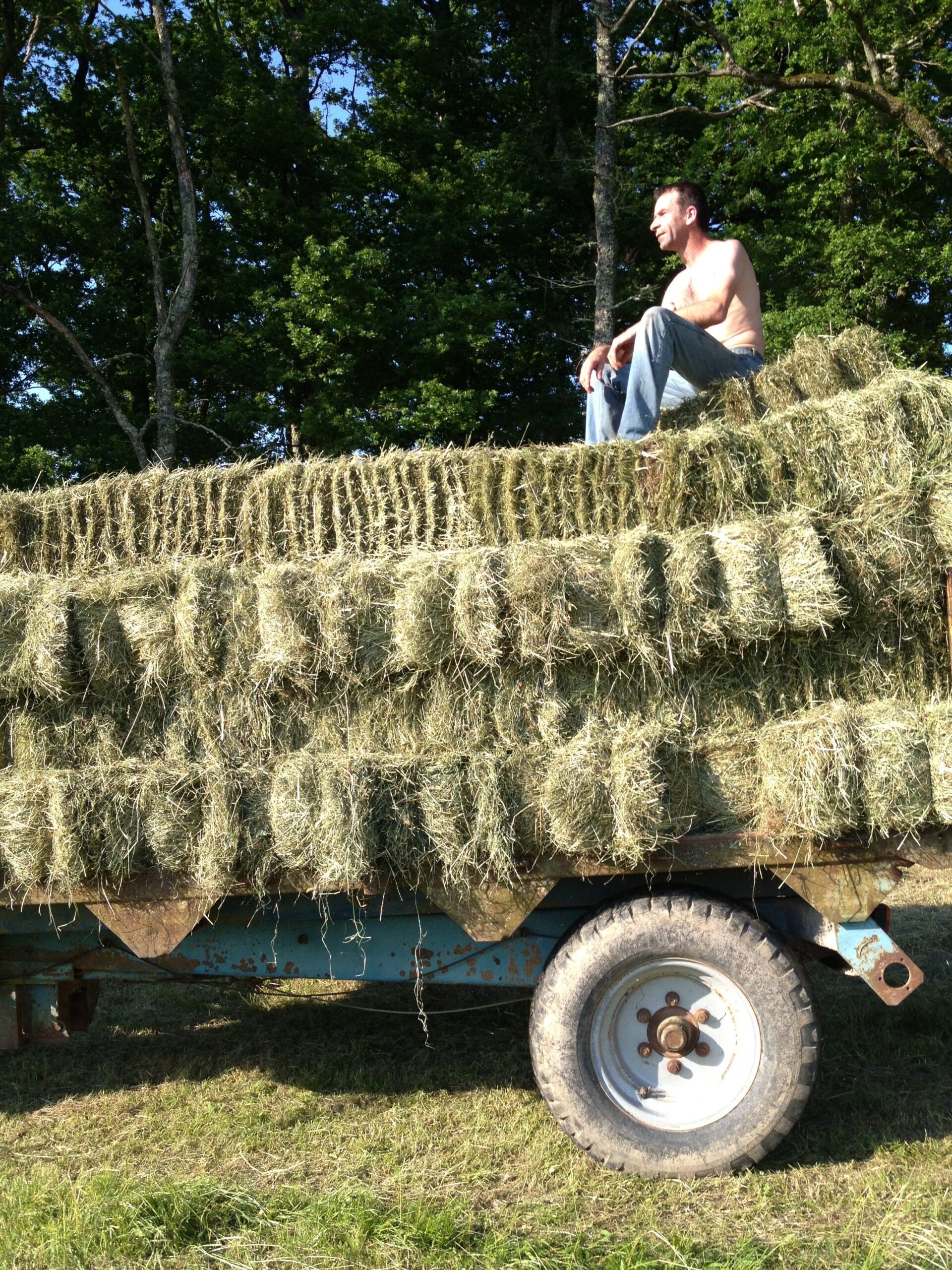 Das Landleben beinhaltet so einige Tätigkeiten, von denen wir als Stadtkinder (natürlich abgesehen von unserem „Melk“ Tom) nicht viel Ahnung haben. Auch die Heuete gehört dazu und das spürt man dann so richtig in den Knochen, wenn man das Gras geschnitten, mit der Heugabel gewendet und am Schluss um die 80 Heuballen aufgeladen hat, von denen jeder mindestens 20 kg wiegt. Das Ganze dauert natürlich nicht nur ein paar Stündli, sondern zieht sich über drei Tage hin, sofern das Wetter optimal mitspielt. Zum Glück ging alles glatt über die Bühne, die Sonne schien, unsere lieben Nachbarn haben einmal mehr kräftig mit angepackt, unsere unglaublich dynamischen Volontäre gemäht, gerächt, gewendet, geschwitzt, geflucht und sich gefreut, als endlich alles unter Dach und Fach war…