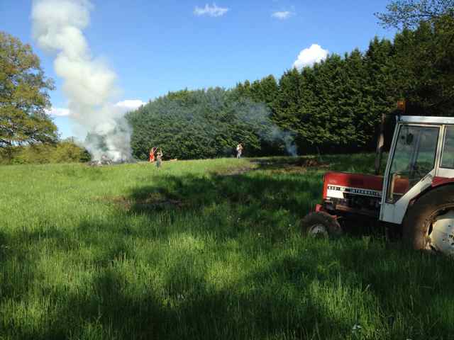 Doch doch, wir leben noch! Irgendwie fliesst die Zeit hier auf Fougerette in einem anderen Takt… Wir waren emsig wie die bald 350 Bienenvölker unseres Nachbarn Christian, der uns hoffentlich dereinst mit Honig beliefern wird, und haben (nachdem wir ganz nebenbei auch noch einen 32-Tonnen LKW entladen haben) den Keller bereits fast frei gelegt. Dort hat unser lieber Vorbesitzer nämlich ebenfalls mit der Mittelalter-Keule angerichtet. Höchste Priorität geniesst derzeit das Projekt „Strom“ und dies nicht nur aus Bequemlichkeit sondern auch aus Sicherheitsgründen. Was wir da teilweise so gefunden haben, liess uns auch ohne Stromschlag die Haare zu Berge stehen: mit Karton abgedeckte Sicherungskästen, mit Baumwolle umwickelte Kabel und ungesicherte Steckdosen. Dem sagenhaften Einsatz aller Anwesenden sei dank sollten wir bald mit dem Einbau des neuen Trassees beginnen können – merci mille fois à tous! Nachstehend ein paar Impressionen, bald werden wir auch der Kanalisation auf die Spur gehen und ausserdem haben wir seit Anfang Mai rund 20 sehr fotogene junge Häsli (des vrais!) oben im Stall.