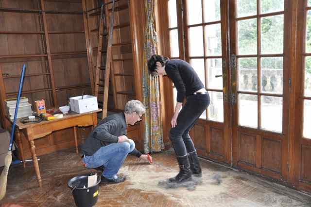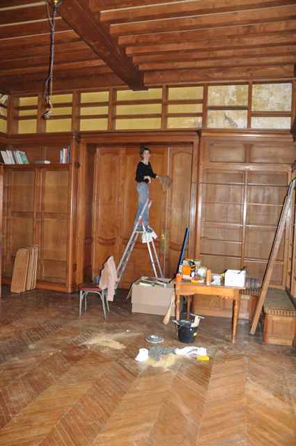 Nach Stahlwatten-Twist, schier endlosem Gekratze mit Spachtel am Parkett (die viel zu vielen Wachsschichten machten dem schön gemaserten Holz ganz und gar keine Ehre) und dem Besuch der sehr sympathischen Kaminfeger von „Morvan Ramonage“ konnten wir unsere Bibliothek endlich wieder in Betrieb nehmen. Selbstverständlich haben wir noch am gleichen Tag ein Füüürli angezündet, um diesen wirklich stilvollen Raum einzuweihen.